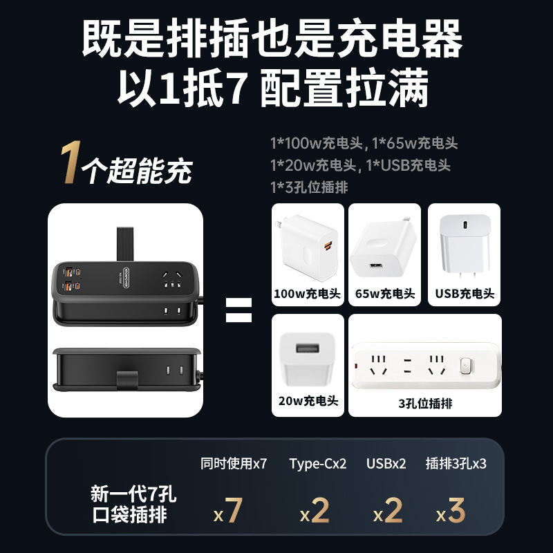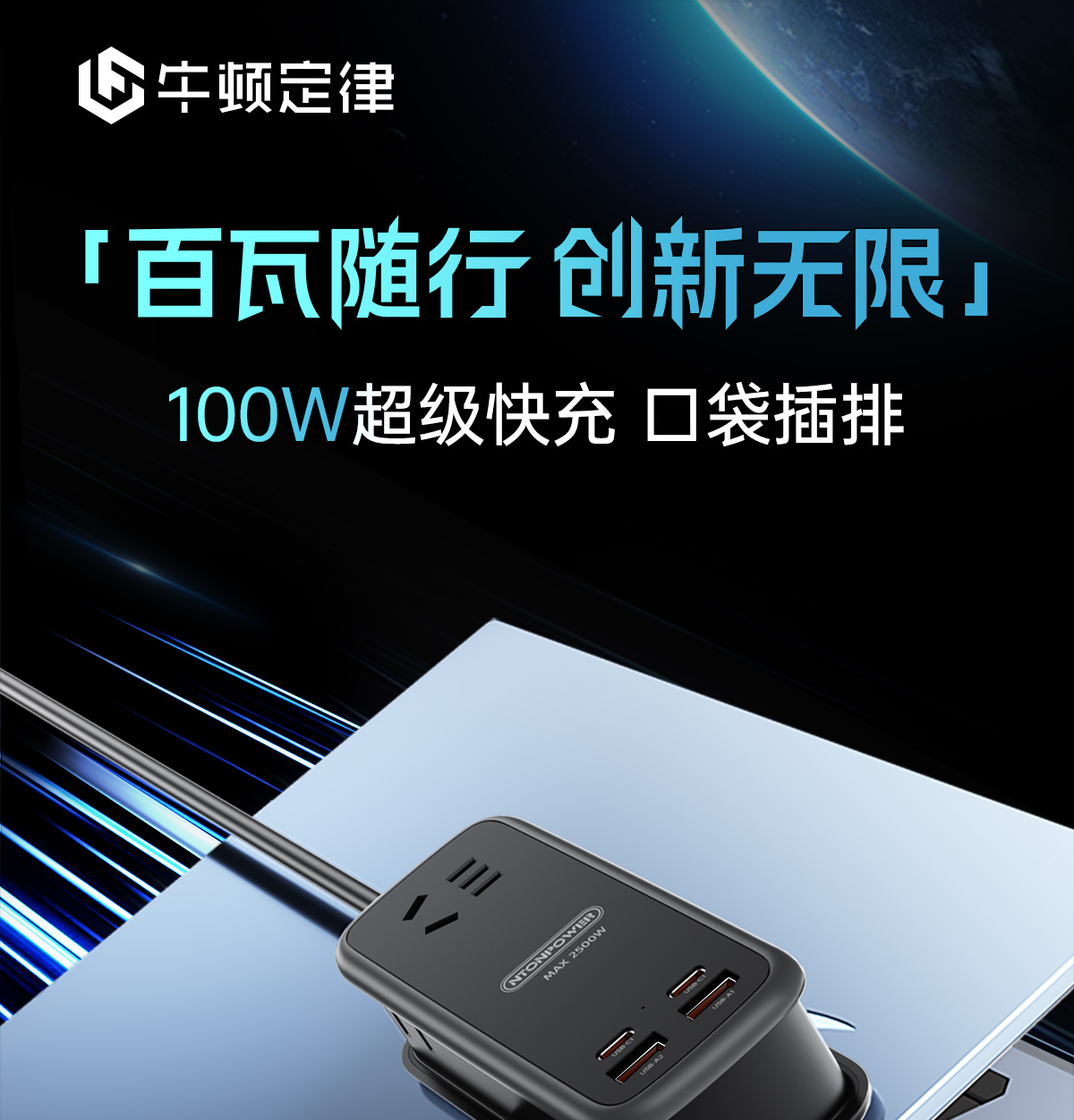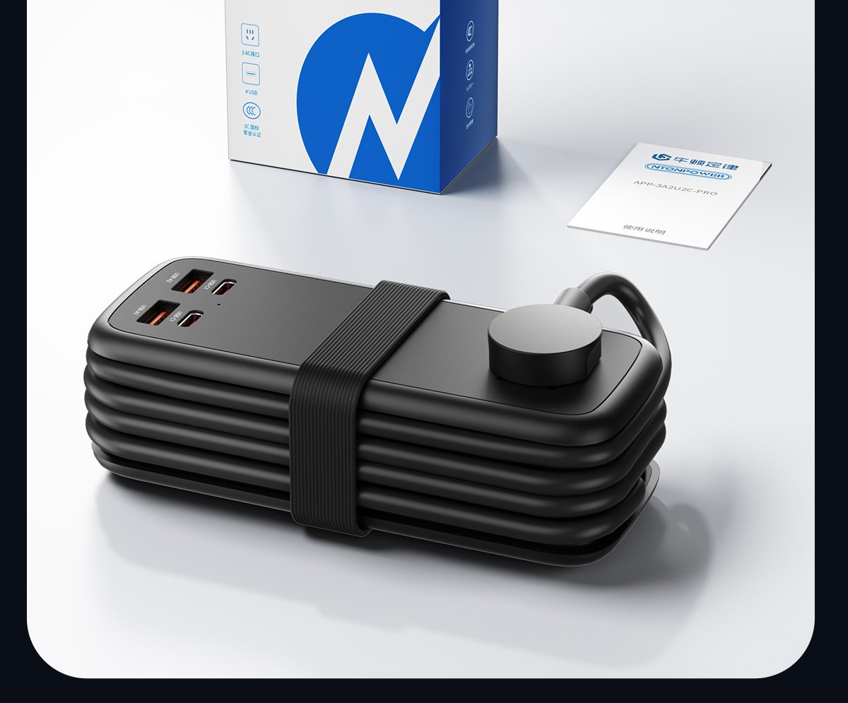 牛顿定律NTONPOWER 100W氮化镓超级快充口袋插排