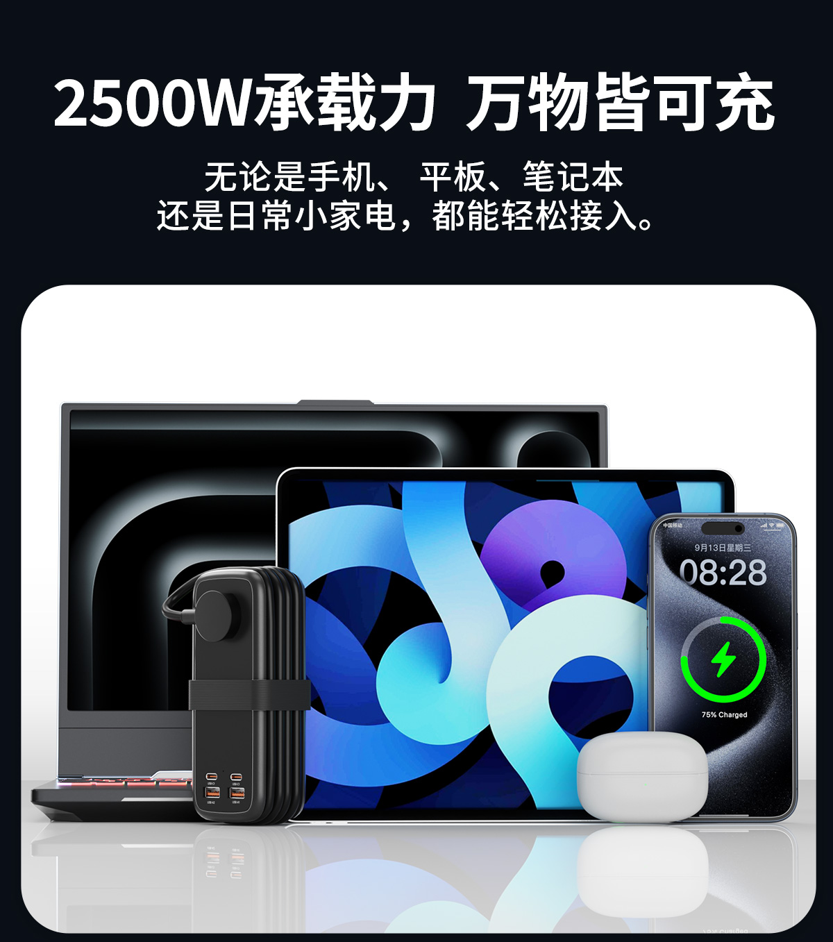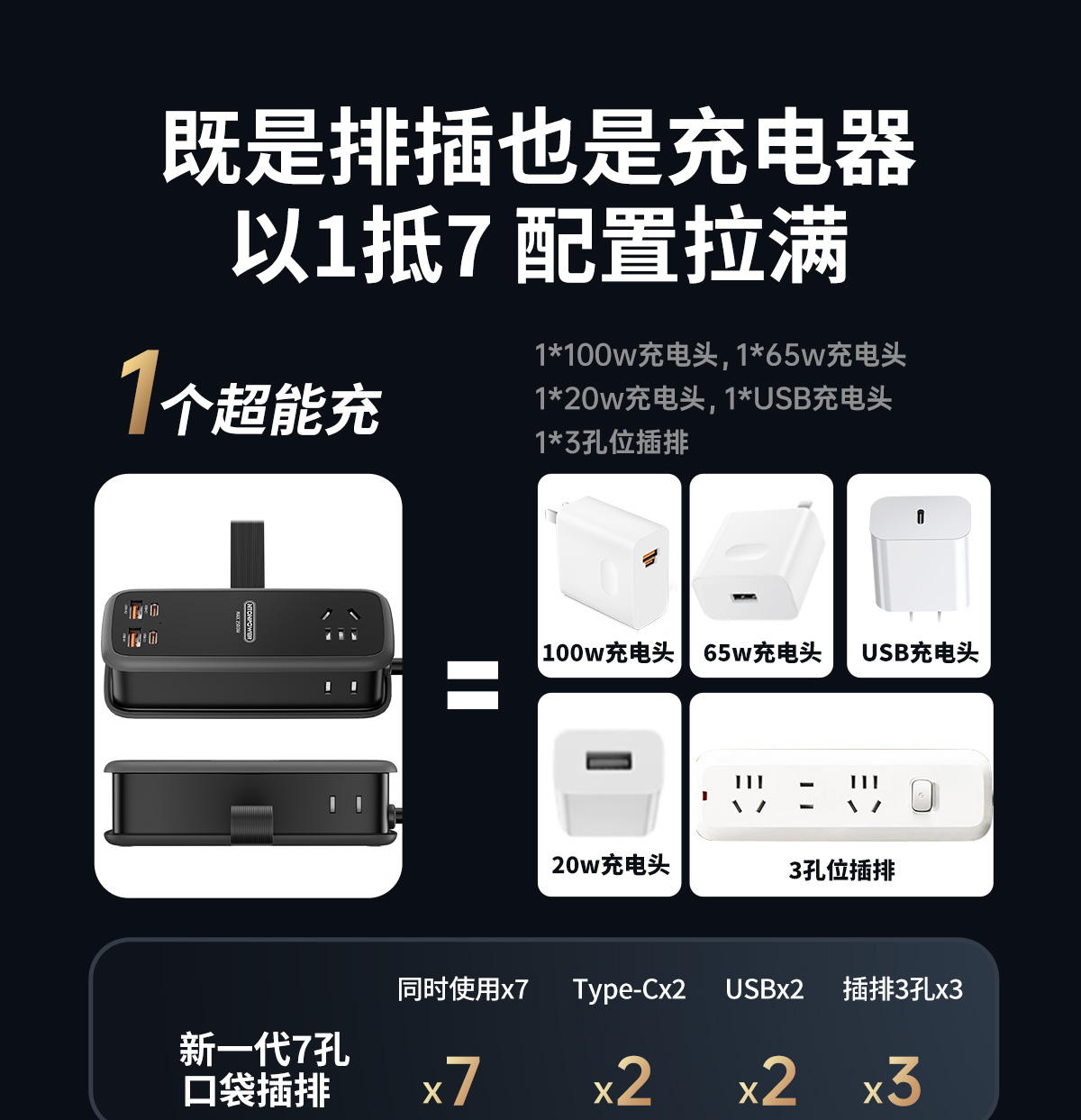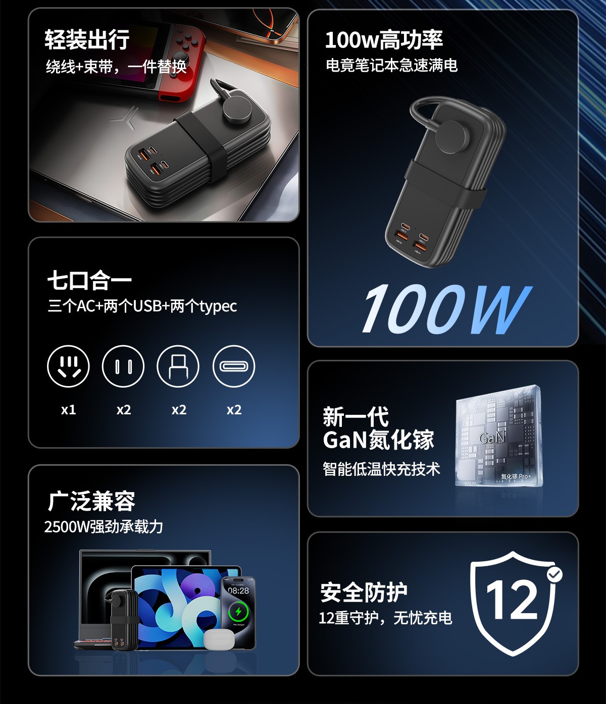 牛顿定律NTONPOWER 100W氮化镓超级快充口袋插排